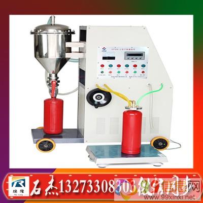 干粉灭火器灌装机新型公开了一种灭火器充装系统,包括预处理单元、充装单元和控制器;所述预处理单元包括真空泵、氮气发生器、加压装置、丁字连接管、三个地一电磁阀、气压传感器和露点传感器;所述充装单元包括重力秤、干粉灭火剂容器、加压泵和地二电磁阀;所述控制器分别与地一电磁阀、地二电磁阀、重力秤、真空泵、氮气发生器、加压装置、气压传感器、露点传感器、加压泵电连接9~9~x~i~n~x~i~n~e~t。干粉灭火器灌装机新型可以明显的提高填充效率提高充装过程的安全性,而且充装的进度更高。
